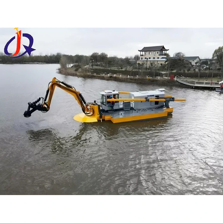 Συγκομιδή υδάτινων ζιζανίων και ανάκτηση υπολειμμάτων: Εξοπλισμένο με τσουγκράνες συλλογής ή κουβάδες αρπάγης, καθαρίζει αποτελεσματικά την υδρόβια βλάστηση, τα επιπλέοντα υπολείμματα και τη λάσπη λιμνών βιομηχανικής καθίζησης.